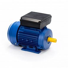 Однофазные двигатели - относительно маломощные и, в отличие от трехфазных электродвигателей имеют на статоре однофазную обмотку. Pотор однофазного двигателя имеет короткозамкнутую обмотку. Так как однофазный ток не способен создать вращающееся магнитноге поле, однофазные двигатели не могут иметь пускового вращающего момента. Для создания начального пускового момента на статоре двигателя располагают вторую, так называемую пусковую обмотку, сдвинутую относительно рабочей обмотки на угол 90°. Чтобы обеспечить сдвиг фаз между токами обеих обмоток используется емкость либо, реже, большое активное сопротивление.